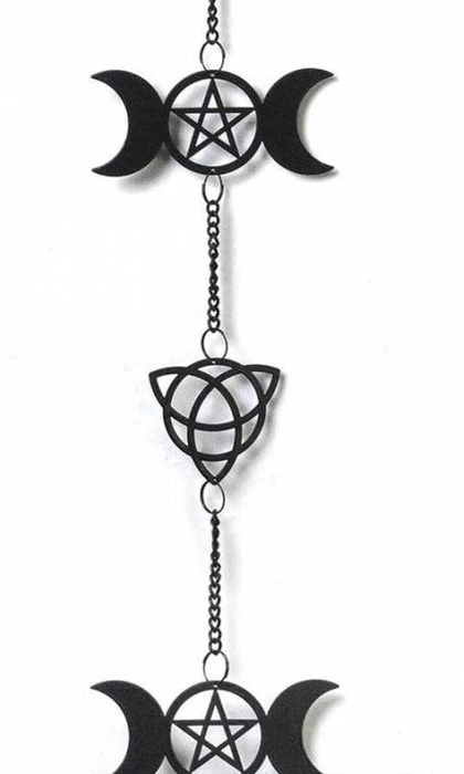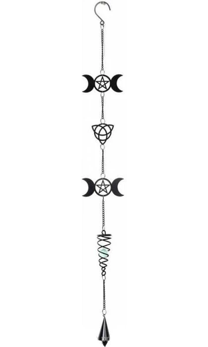 Add some Pagan magic into your home or garden with this stunning triple Moon and Triquetra designed, three in one wind chime, hanging decoration and wind spiral! Add your own unique style to any room, home or garden with these Alchemy designed hanging decorations/ wind chimes.