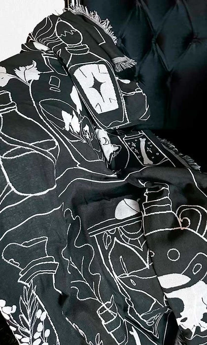 This woven tapestry is the perfect way to add spooky elegance to your crypt! Hang it on your walls, use as a throw blanket or take it on a magical picnic, perfect for sitting on!