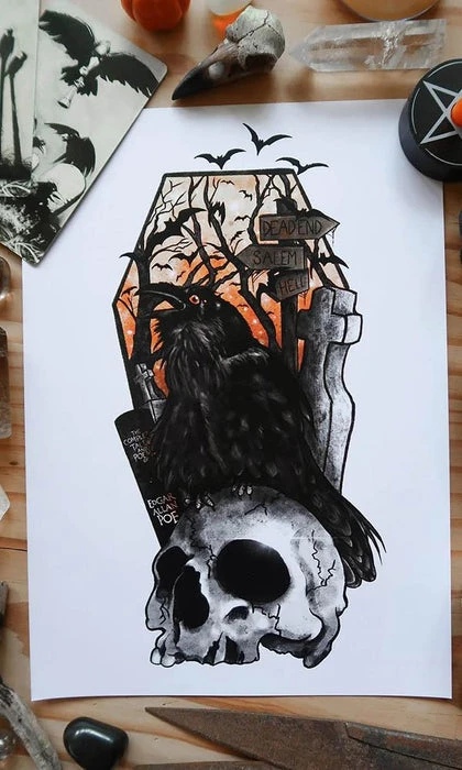 High Quality A4 print of Ghosts of October Raven Familiar artwork