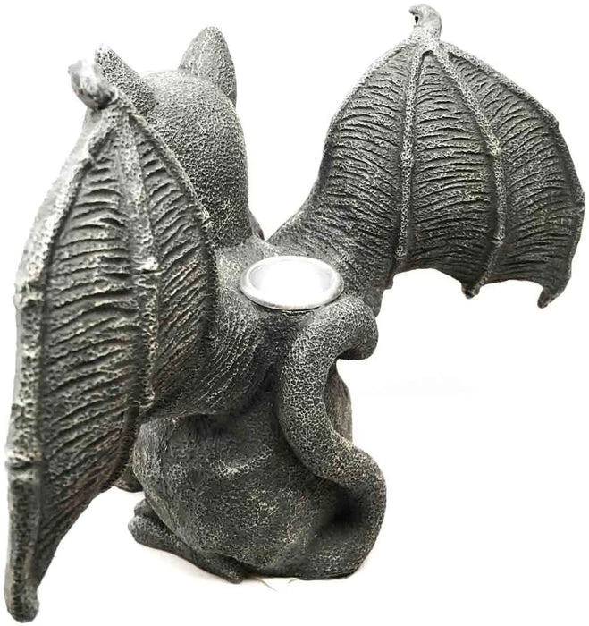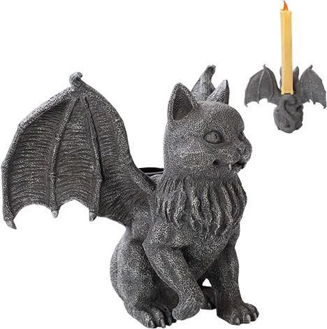 Most cats simply scamper off into the night, but this winged feline has other plans! The perfect addition to your Halloween or Gothic décor, this Vampire Cat Gargoyle Candle Holder will add a dark glow over any room in your home. Crafted from cold cast resin, this candle holder is painted by hand and features a stone grey colour.