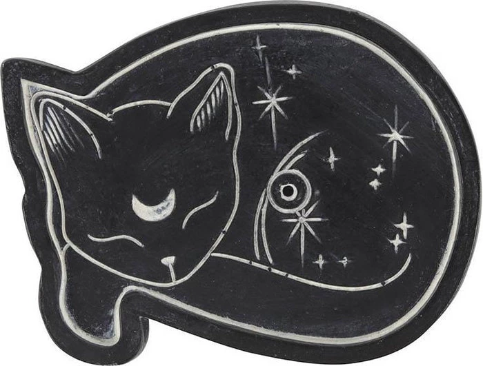 This black resin incense holder comes in the shape of a mystical sleeping cat and is compatible with both incense sticks and cones. Makes a great gift andΒ additionΒ for gothic, witchy and alternative homes.