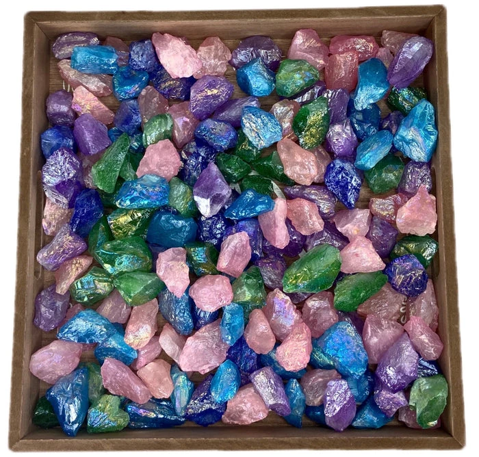 Add a pop of colour and good vibes to your collection with the Rainbow Aura Quartz Crystals!