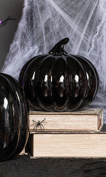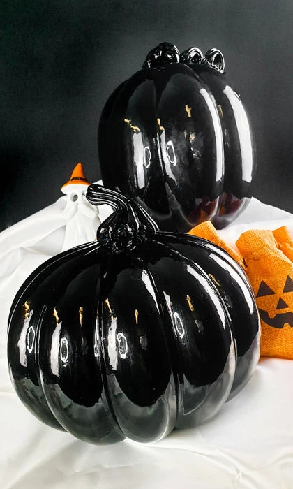 Black Glass Pumpkins are a Fall décor must have. Display these pumpkins on your coffee table, shelf or entryway to add a festive touch to your space all season long.