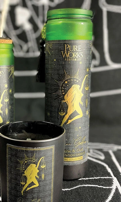 Create a inner peace within your space with the Esoteric Manifestation Jasmine & Oud Tall Candle. Jasmine and oud has been used for many years in aromatherapy for increasing alertness, promoting inner peace and calming benefits. It is a great addition to any household or altar.