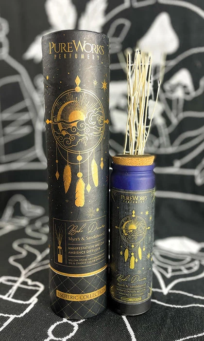 EncourageΒ calmness within your space with the Esoteric ManifestationΒ Myrrh & Sandalwood Reed Diffuser.Β Myrrh and SandalwoodΒ has been used for years inΒ aromatherapyΒ toΒ lift negative moods, promote calmness andΒ improve sleep quality. It is a great addition to any household or altar.