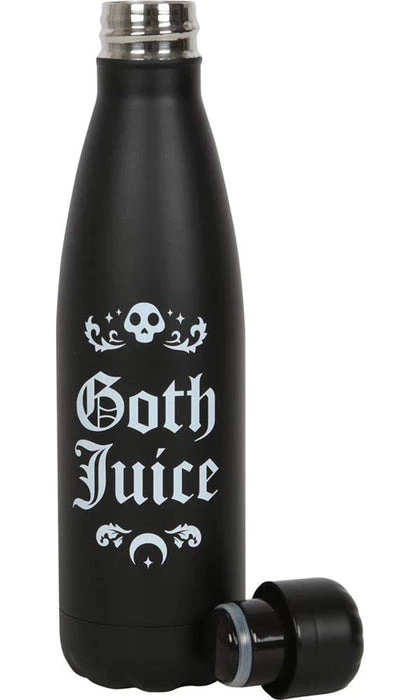 This jet black water bottle features the text ‘Goth Juice’ in gothic themed text. Ideal for gothic lovers, this striking bottle is sure to beΒ perfect for everyday use!