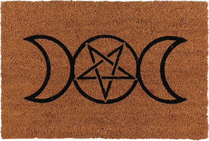 A natural coir doormat with printed Triple Moon design. The Triple Moon is a popular symbol representing the Triple Goddess and is characterised by a waxing, full and waning moon.ย