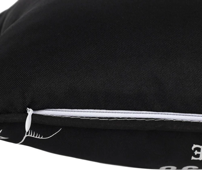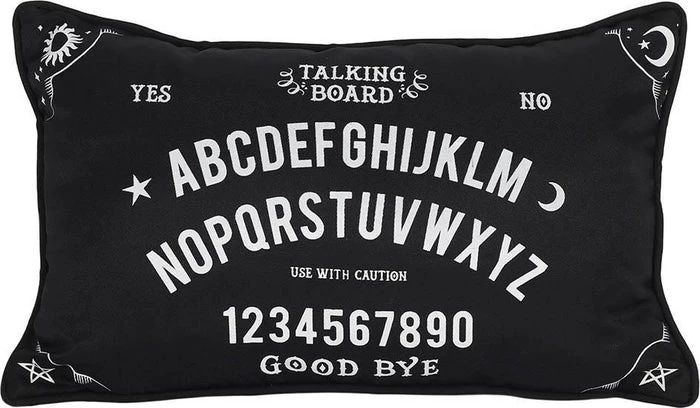 This lovely rectangular fabric cushion is black in colour with a white ouija talking board design. Zip closure so inner can be removed.