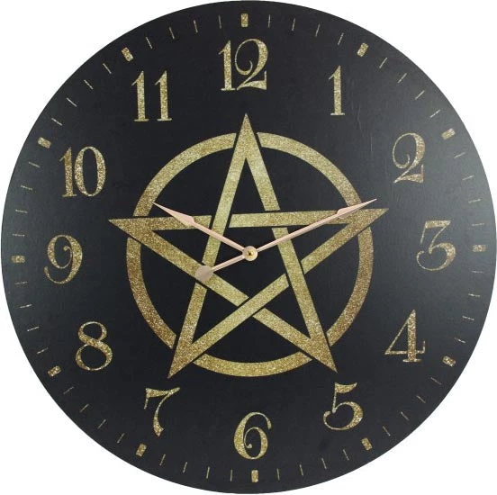 Keep track of time with theΒ PentagramΒ Clock. This Wiccan inspired clock features a golden pentagram on the centre of the black face.Β