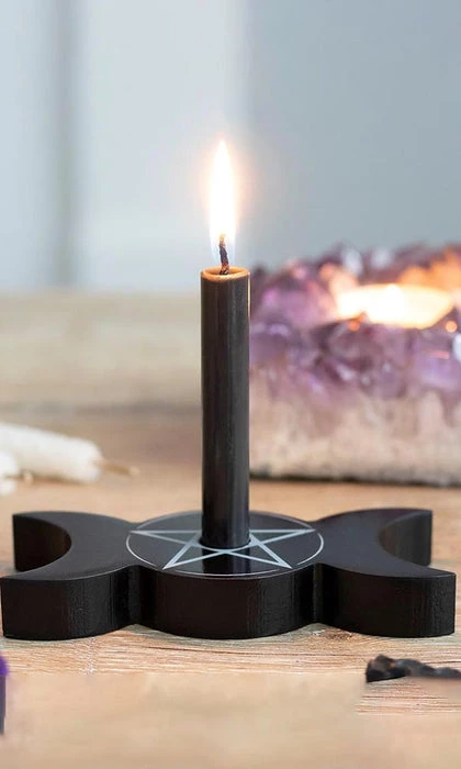 This triple moon candle holder is perfectly sized for holding a single spell candle whilst it burns during casting.Β