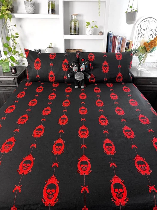 The Horror Nightmare Queen Quilt SetΒ brings creepy andΒ macabreΒ vibes to the bedroom.Β FeaturingΒ skullsΒ print designΒ – perfect for anybody who likes to doze on the deadly side!Β