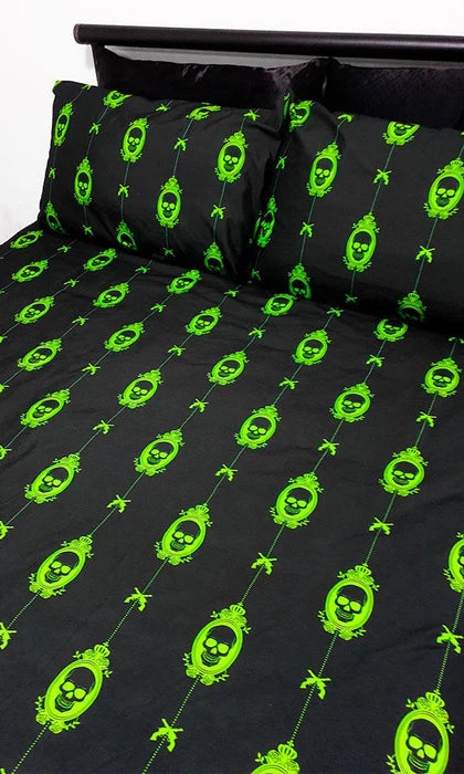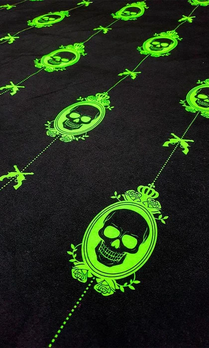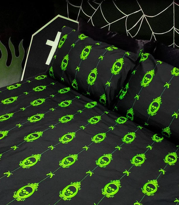 The Poison Nightmare Quilt Set brings creepy and macabre vibes to the bedroom. Featuring skulls print design – perfect for anybody who likes to doze on the deadly side!