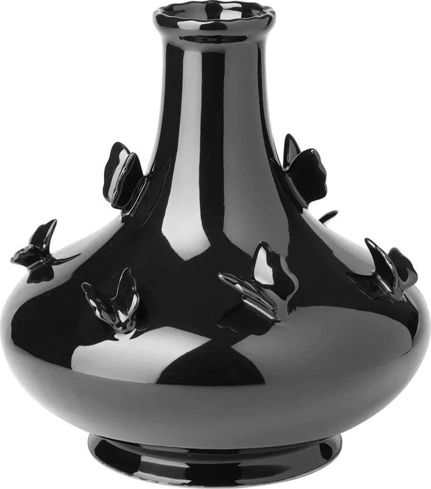 – Sculpted butterflies around vase.