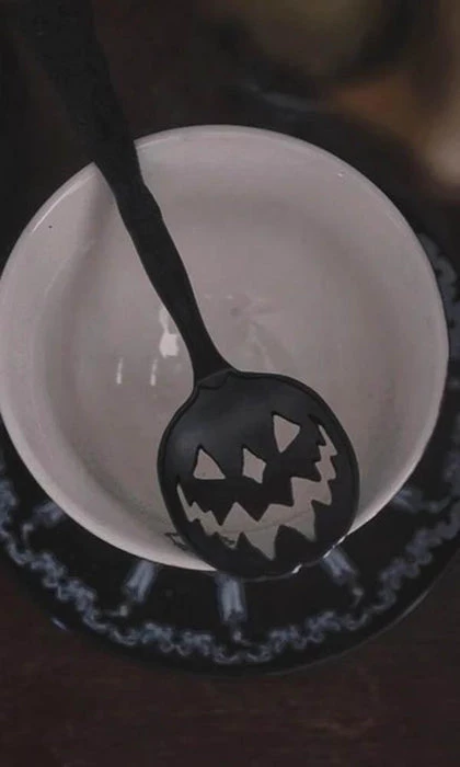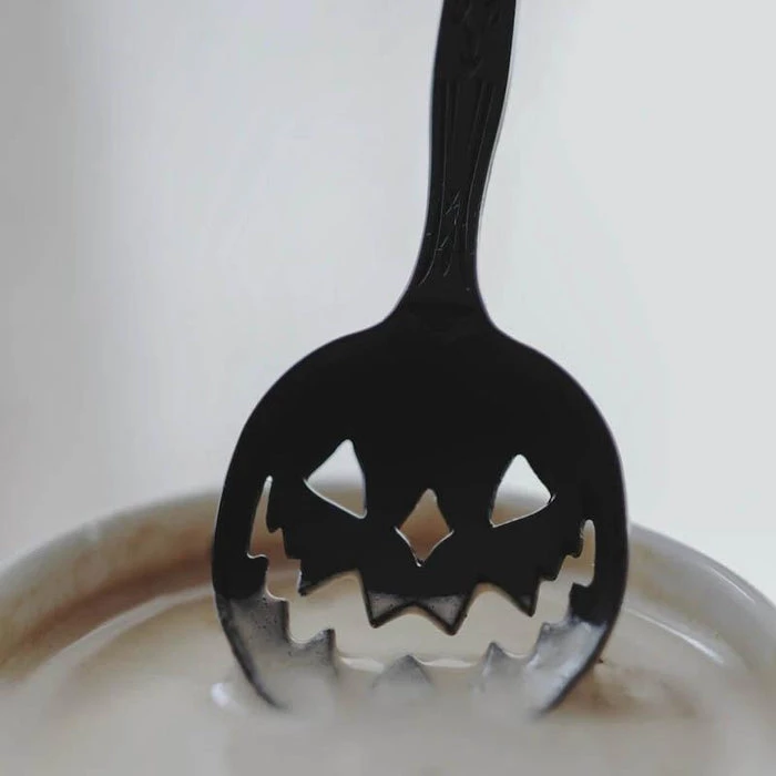 Haunted Hallows. The official Jack-O-Lantern of Lively Ghosts.ย This 6″ spoon features intricate design-work on the handle โ including crescent moons and a Victorian-inspired filigreeย โ as well as a cutout jack-o-lantern design for the base. Perfect for mixing libations such as tea, cocktails, poison, and the like.ย