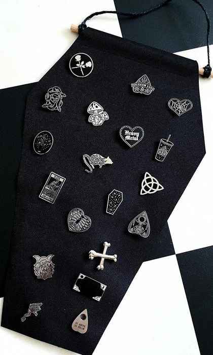 Calling all Pin lovers! Coffin Pin Flag is perfect for hanging on your wall and displaying all your Gothic Pins with pride!