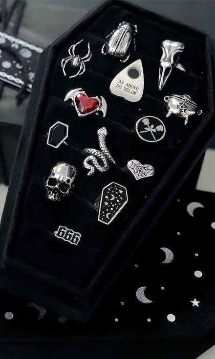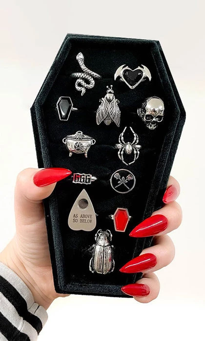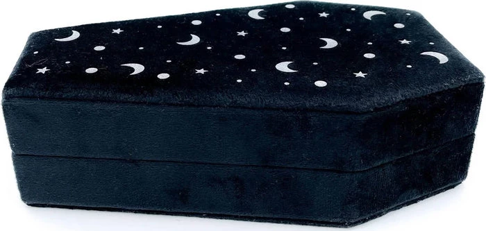 The heavens areย calling you with the Cosmic Coffin ring tray! Protect and safely hold between 18 & 20 rings (depending on ring size).ย