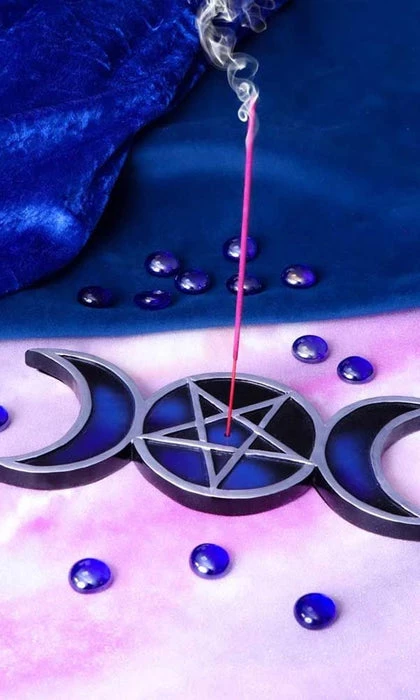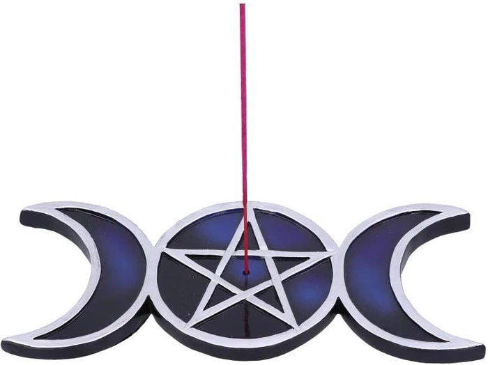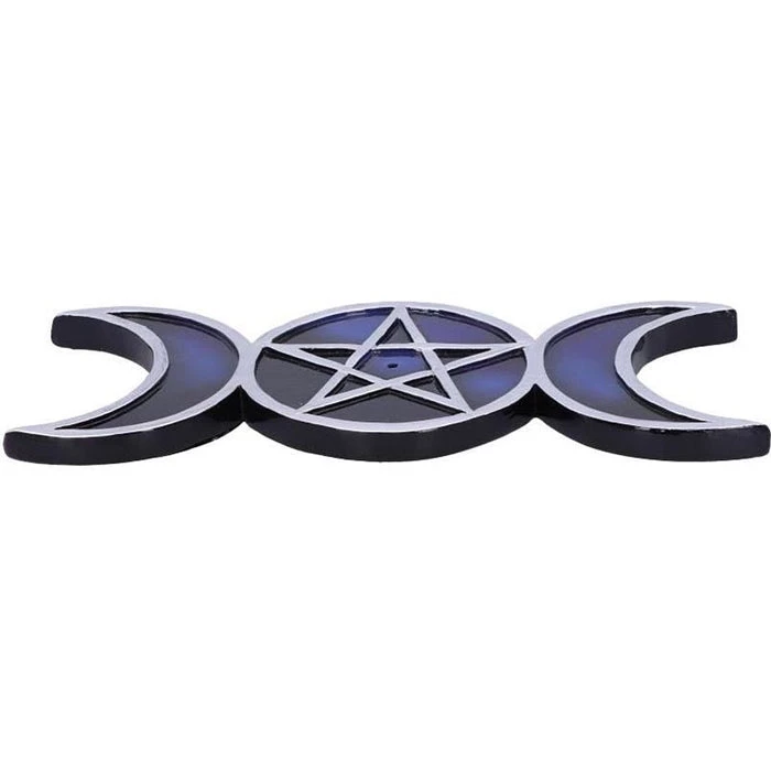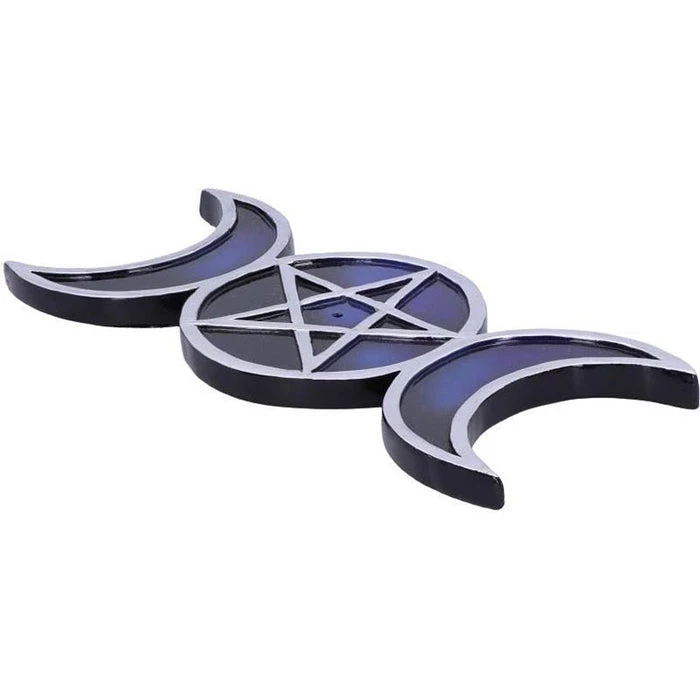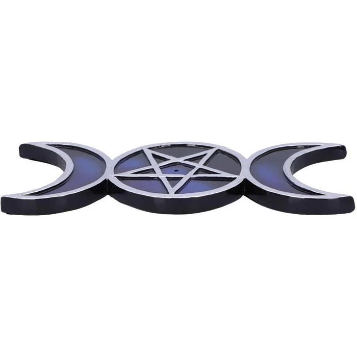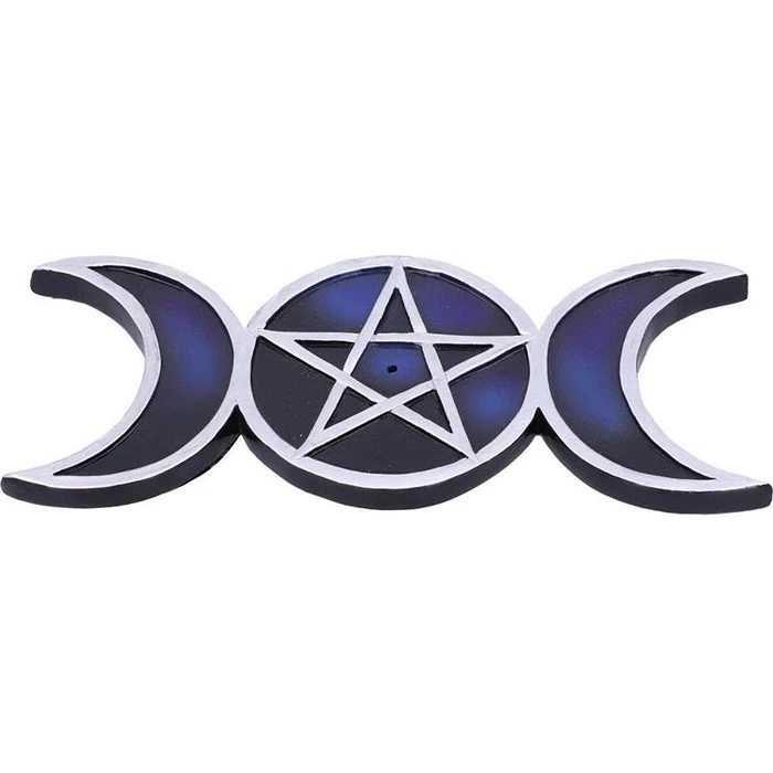 Shaped like the triple moon symbol, this piece lies on any flat surface and is made up of silver outlines of the waxing, full and waning moons. Inside the full moon there sits a pentagram with a central hole where you can place your favourite incense sticks. Representing the cycle of life, these pieces have been cast in the finest resin before being carefully hand-painted.