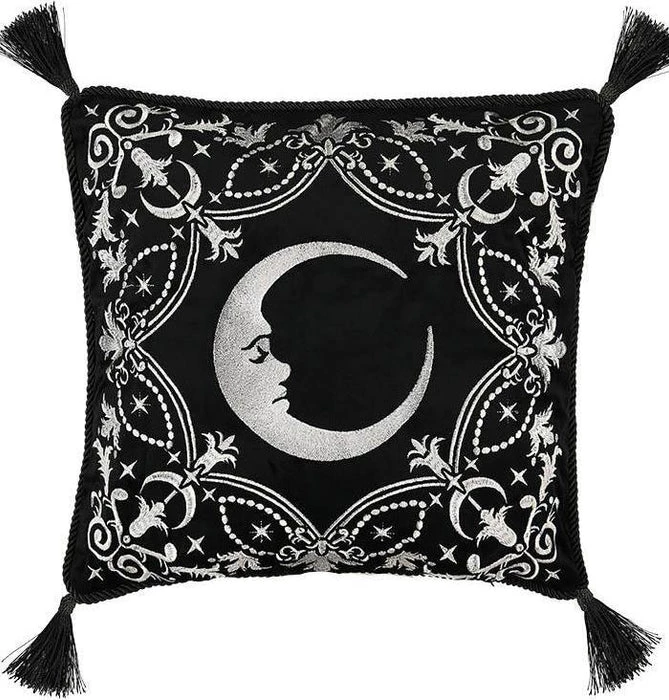 Calling all moon lovers! Do you dream about creating a dark and creepy atmosphere within the comfort of your own home? Conjure up your ideal space with the Crescent Cushion Cover and appease your sense of aesthetics!