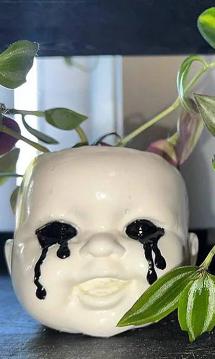 Add a touch of spook to your home and garden with this Doll Head White Planter!