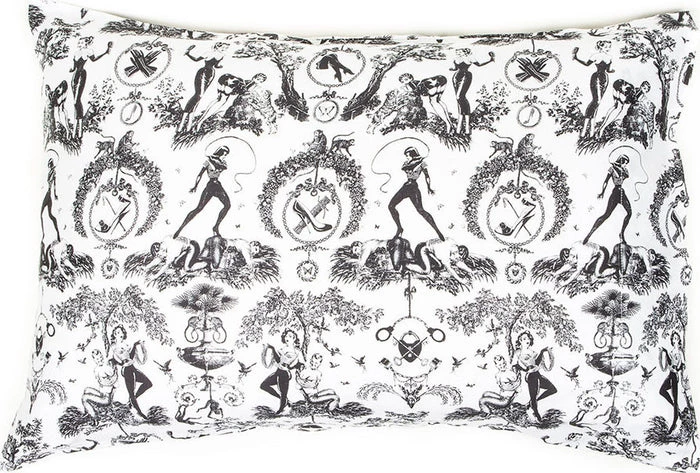 If you like to play, then it’s time to beg for these sheets on your bed – at first glance this Victorian toile is a traditional classic. But look closer, you’ll see the scene is at “Her Beck and Toile”