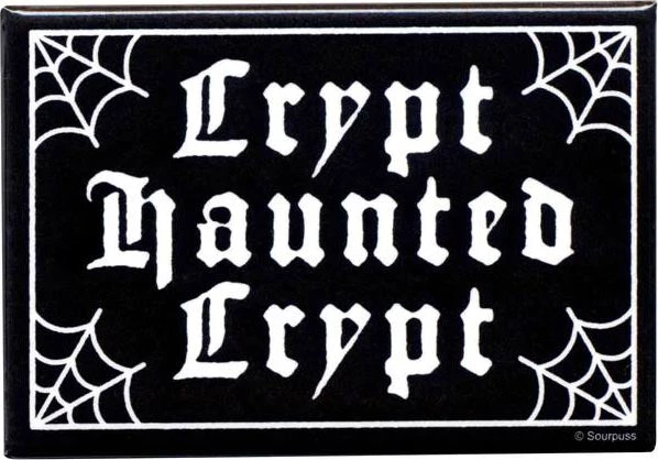 Ahh, crypt sweet haunted crypt. Honor your spooky abode with this fun magnet! Perfect for your fridge, office, file cabinet, or any magnetic surface.